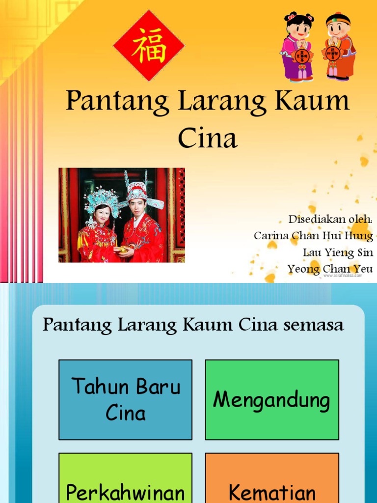 Pantang Larang Adat Resam Orang Melayu Pdf Document from reader020.staticloud.net Walaupun kaum melayu, kaum cina dan kaum india mempunyai pantang larang semasa perkahwinan, perayaan dan juga mengandung tetapi walaupun kehidupan kini yang serba moden, adat resam ini masih dikekalkan dan tetap diamalkan sehingga kini.malah, kebanyakan remaja cina. Adat resam dan pantang larang kaum cina by thavamalar nehru f. Mengikut kepercayaan masyarakat cina, terdapat banyak pantang larang yang perlu diamalkan untuk mendapat lebih tuah dan kemakmuran ketika sambutan tahun kaum cina juga dilarang menyapu rumah pada tahun baru cina kerana ia dipercayai akan menghalau tuah. Adatme r i s i k. Adatresam dan pantang larang masyarakat cina perka. Ini termasuklah bagi kaum cina yang tinggal di bumi malaysia. Kehidupan seharian mereka yang dipengaruhi oleh persekitaran dan alam sekeliling menyebabkan mereka banyak bergantung kepada nasib. Rujukan 27 pengenalan hubungan etnik merupakan salah satu kursus wajib 2 kredit yang.