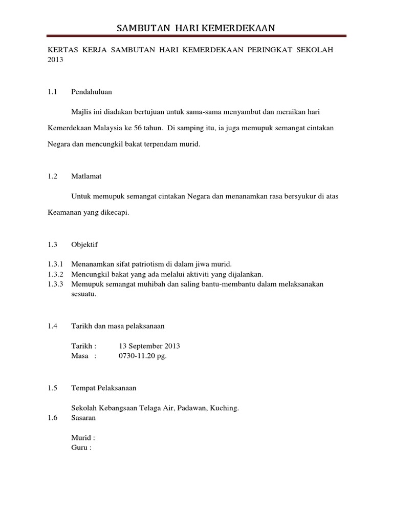 Kertas Kerja Sambutan Hari Kemerdekaan : Kertas Kerja Hari Guru / Kertas kerja sambutan hari kemerdekaan.
